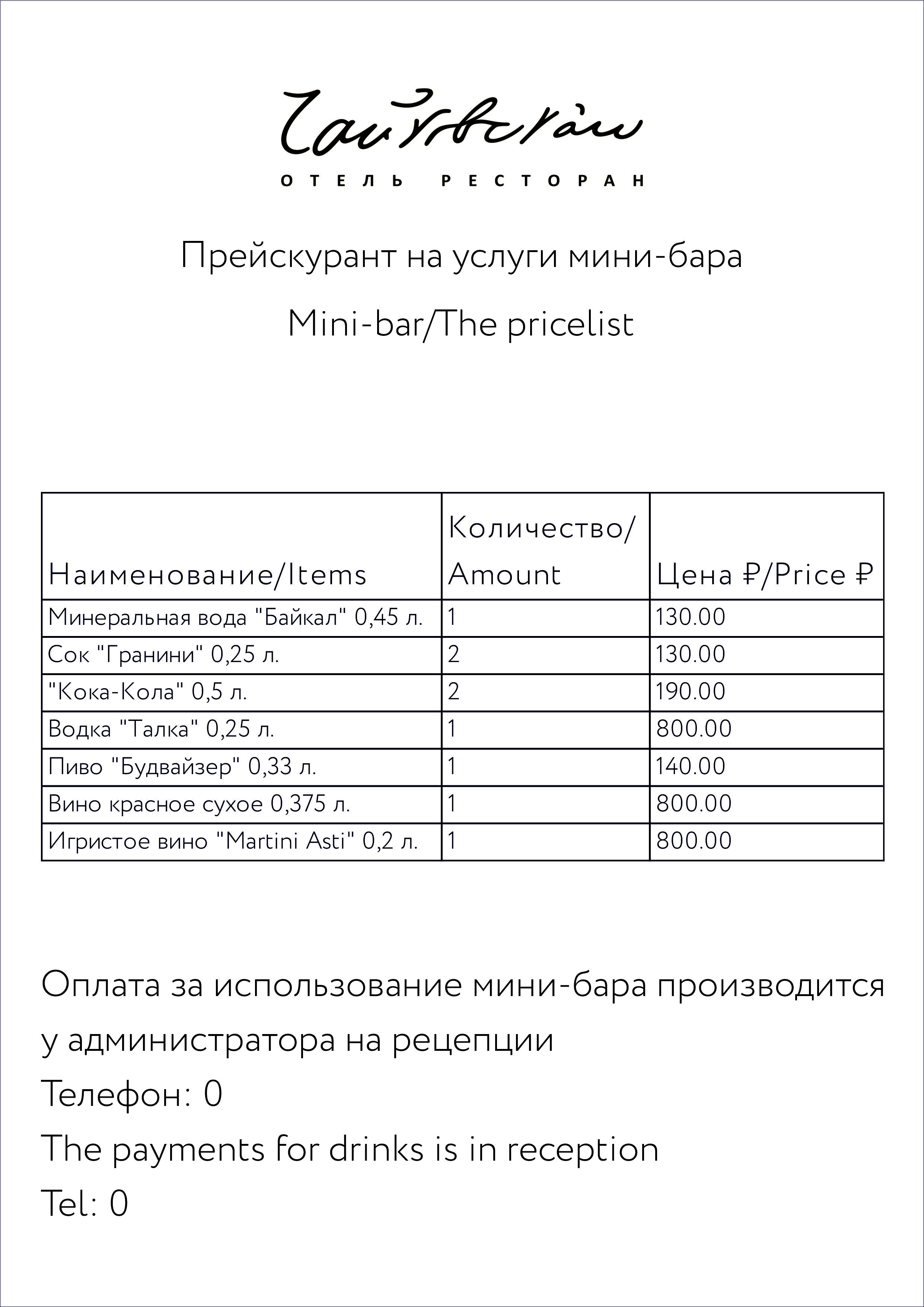 The bar focuses on vodka and strong drinks, offering both classic choices and unconventional, historical options such as the traditional "bread wine" Polugar.